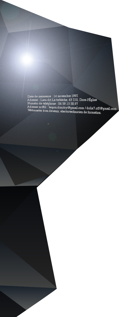 Titulaire du permis A et B. En paralléle avec mes compétences d'électrotechnicien, j'ai développé des compétences personnels dans quelques secteurs distincts.